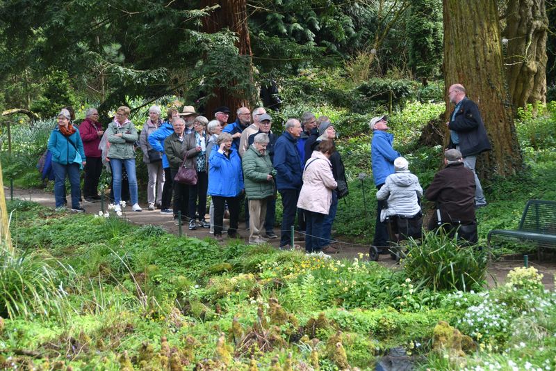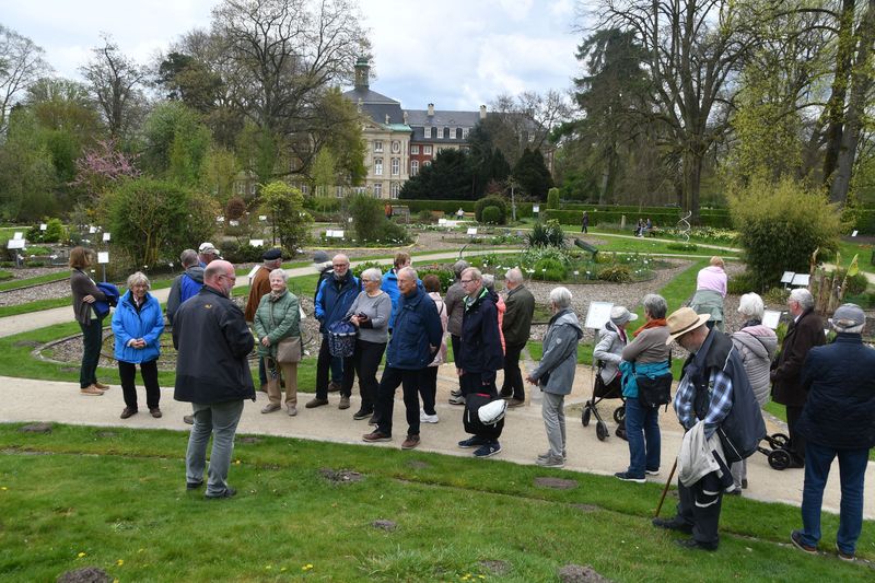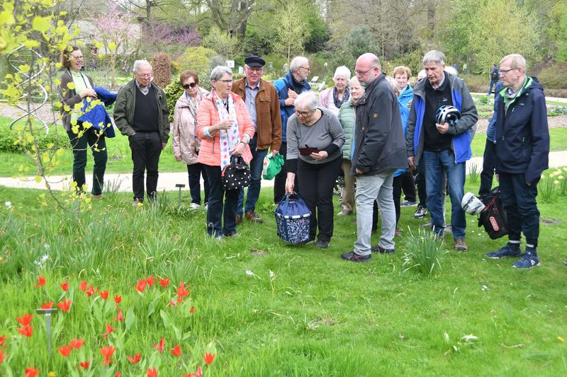 Insgesamt 26 Interessierte fuhren am Sonntagnachmittag bei angenehmem Frühlingswetter überwiegend auf dem Fahrrad, teilweise aber auch mit dem Auto zum Botanischen Garten der Universität (hinter dem Schloss).